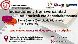 Indicadores y transversalidad/ Adierazleak eta Zeharkakotasuna 24/03/2022 16.30-20.30 Locales de voluntariado Gobelaurre: Parque J.M. Txabarri Zuazo S/N.48930. Getxo Inscripción:Aquí